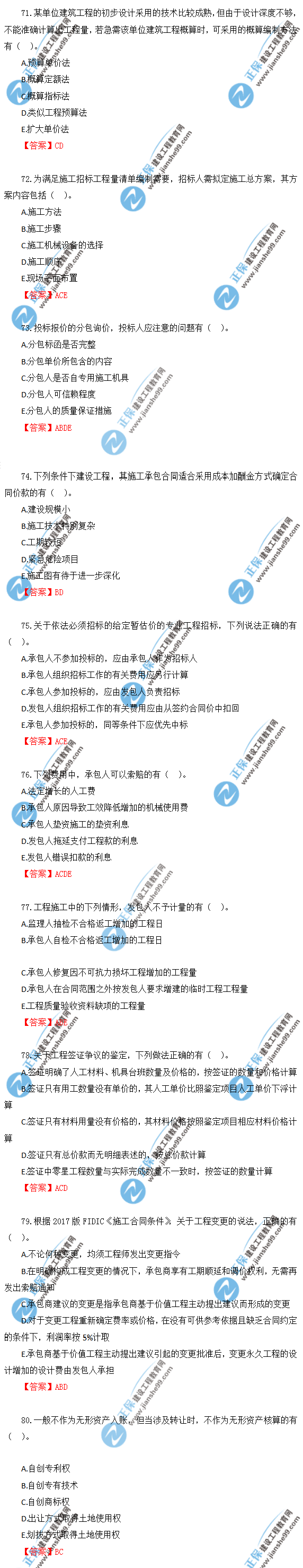 2019年一級造價師《建設(shè)工程計價》試題及答案解析71-80