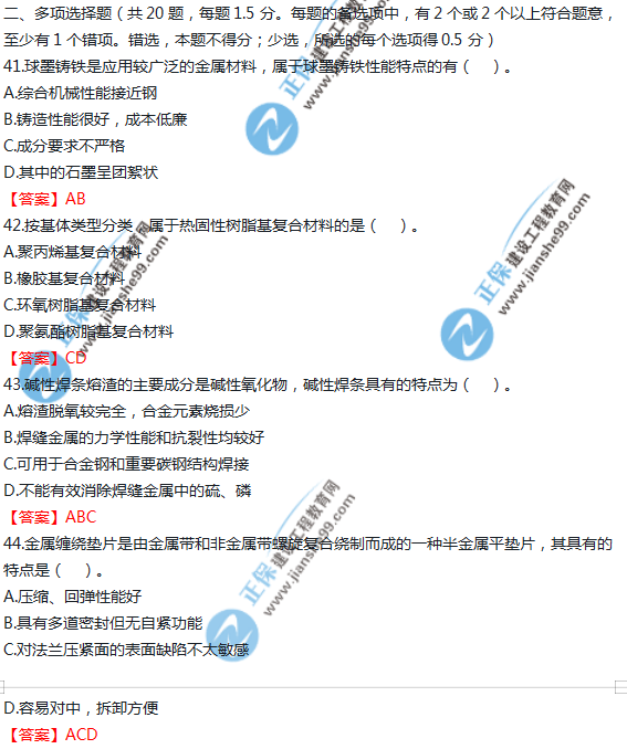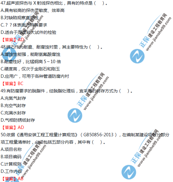 以上就是為大家分享的2019年一級造價(jià)師《技術(shù)與計(jì)量(安裝)》試題及答案解析41-50,建設(shè)工程教育網(wǎng)將持續(xù)關(guān)注2020年一級造價(jià)師考試的相關(guān)信息。更多2020年一級造價(jià)師考試內(nèi)容,盡在建設(shè)工程教育網(wǎng)一級造價(jià)師欄目!