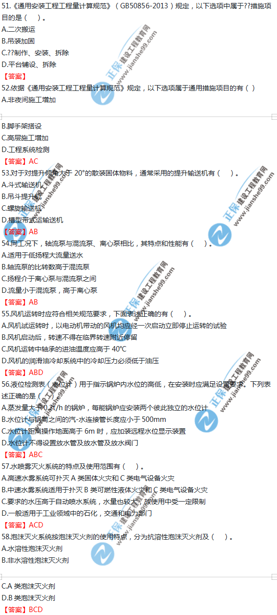 以上就是為大家分享的2019年一級(jí)造價(jià)師《技術(shù)與計(jì)量(安裝)》試題及答案解析51-60,建設(shè)工程教育網(wǎng)將持續(xù)關(guān)注2020年一級(jí)造價(jià)師考試的相關(guān)信息。更多2020年一級(jí)造價(jià)師考試內(nèi)容,盡在建設(shè)工程教育網(wǎng)一級(jí)造價(jià)師欄目!