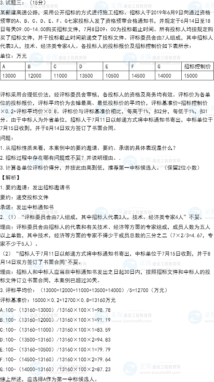 2021年一級(jí)造價(jià)師《交通案例》試題答案及解析三