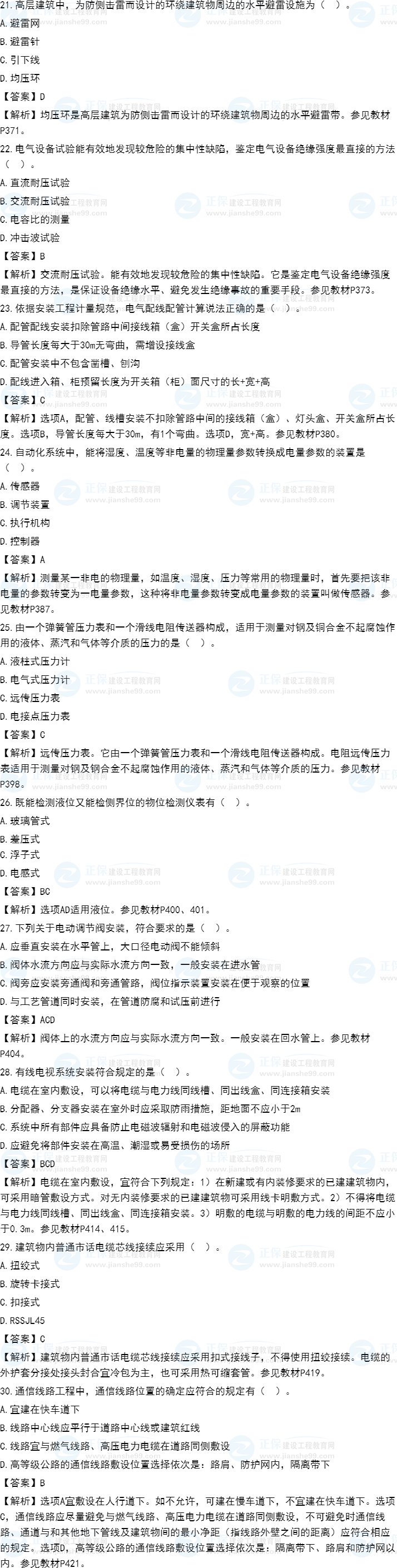 2021年一級造價師《安裝計量》試題答案及解析81-90