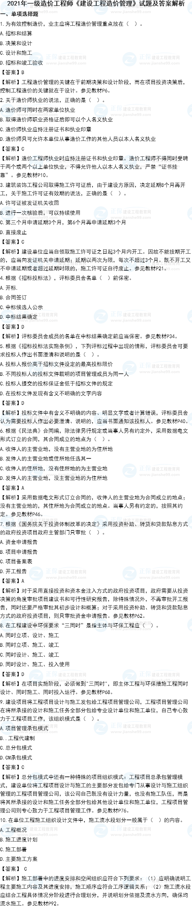 2021年一級造價師《建設(shè)工程造價管理》試題答案及解析1-10