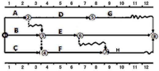 某工程雙代號時標(biāo)網(wǎng)絡(luò)計劃如下圖所示,其中工作A的總時差為(?。┲?。