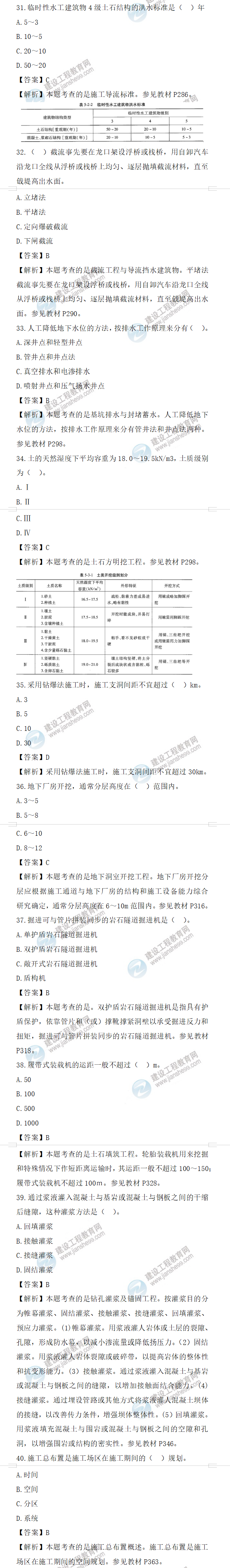 2022年一級(jí)造價(jià)師水利計(jì)量試題答案及解析31-40題