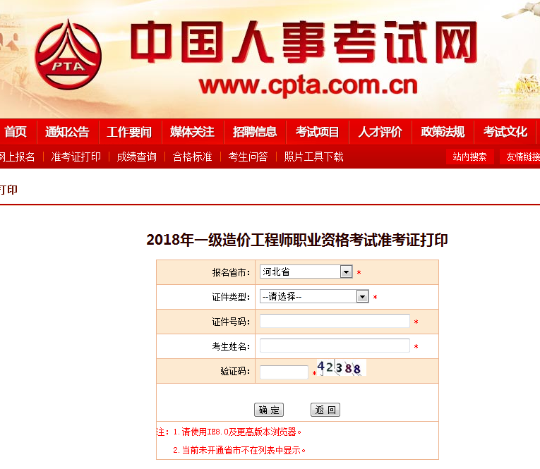 中國人事考試網(wǎng):河北2018一級(jí)造價(jià)工程師考試準(zhǔn)考證打印入口