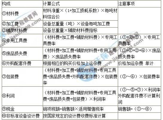 2.國產(chǎn)非標準設(shè)備原價:不能批量生產(chǎn)。采用成本計算估價法、系列設(shè)備插入估價法、分部組合估價法、定額估價法等方法確定。(計插組定)