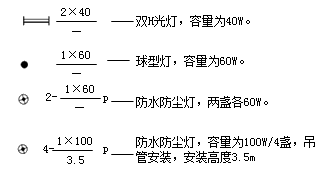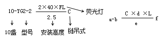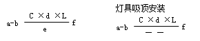 a-燈數(shù) b-型號(hào)或編號(hào) c-每盞燈具的燈泡數(shù) d-燈泡容量(w) e-燈泡安裝高度(m) f-安裝方式 L-光源種類