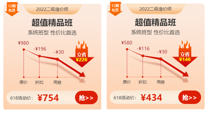 12期0利息!購22年二級造價師課程,每天低至1塊2!