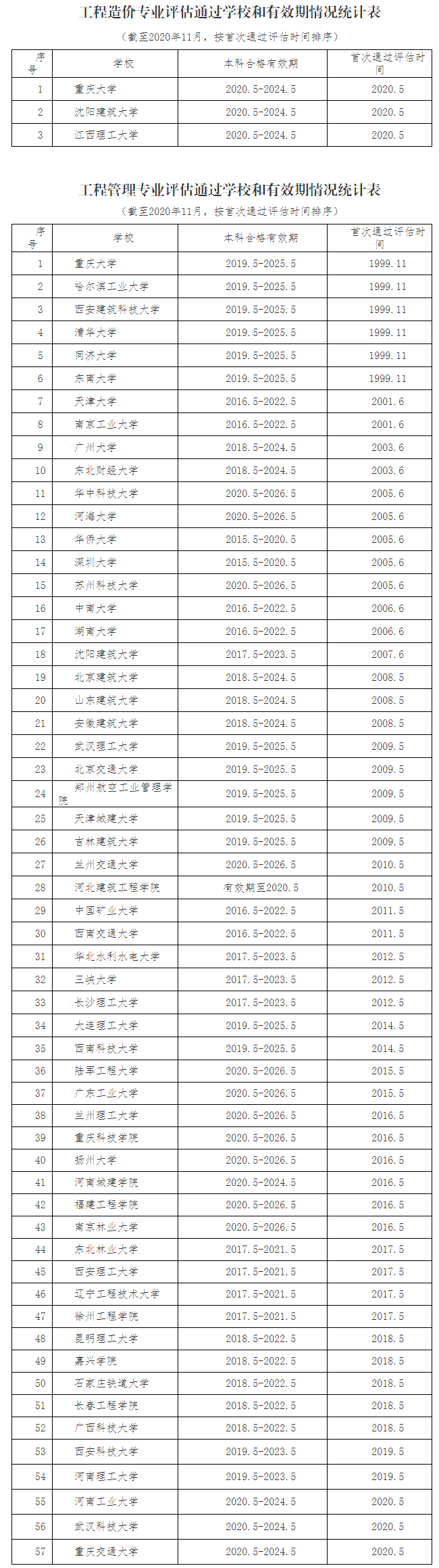 2021年工程教育專業(yè)評估(認(rèn)證)的工程管理、工程造價(jià)專業(yè)院校名單
