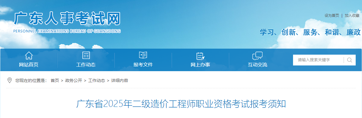 廣東人事考試網(wǎng)發(fā)布廣東省2025年二級(jí)造價(jià)工程師職業(yè)資格考試報(bào)考須知,詳情如下: