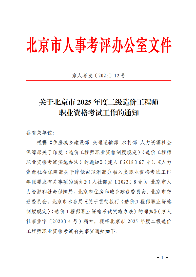 關(guān)于北京市2025年度二級造價(jià)工程師職業(yè)資格考試工作的通知_01