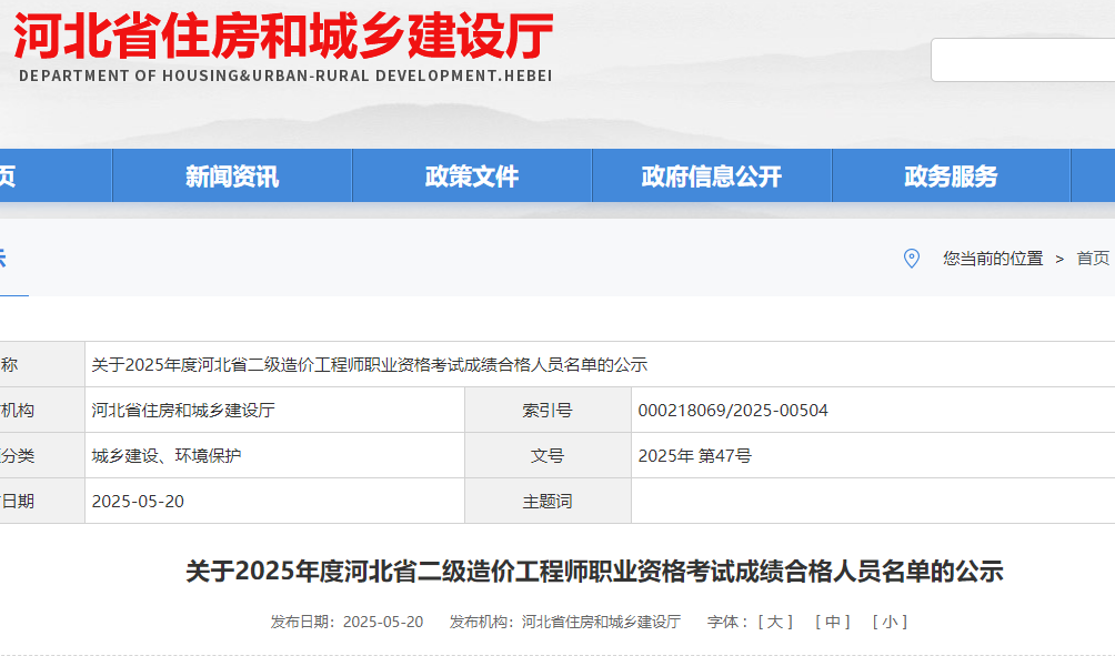 2025年度河北省二級造價工程師職業(yè)資格考試成績合格人員名單公示