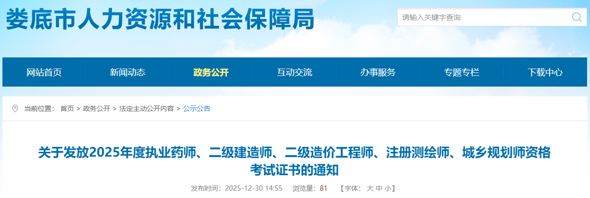 關(guān)于發(fā)放2025年度執(zhí)業(yè)藥師、二級(jí)建造師、二級(jí)造價(jià)工程師、注冊(cè)測(cè)繪師、城鄉(xiāng)規(guī)劃師資格考試證書(shū)的通知