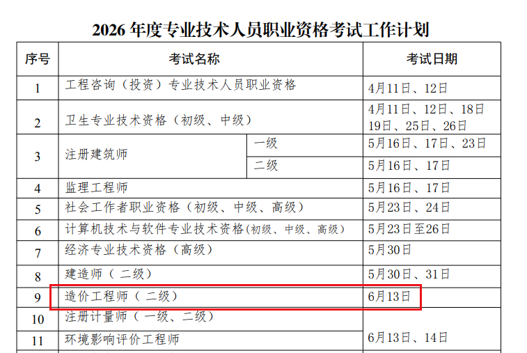寧夏考區(qū)2026年二級(jí)造價(jià)師考試時(shí)間確定!