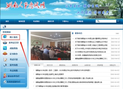 報(bào)考人員可登錄湖南人事考試網(wǎng)(),點(diǎn)擊“網(wǎng)上報(bào)名”中的“省級(jí)專業(yè)技術(shù)人員資格考試服務(wù)平臺(tái)”進(jìn)行網(wǎng)上報(bào)名。