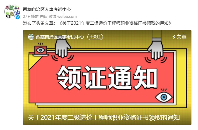 西藏自治區(qū)關于2021年度二級造價工程師職業(yè)資格證書領取的通知