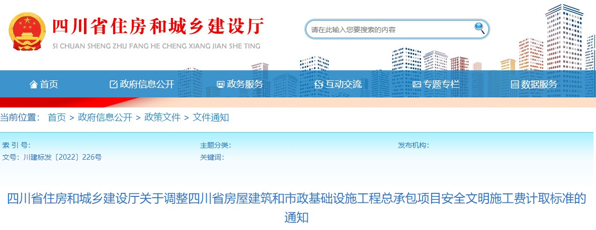 四川省住房和城鄉(xiāng)建設(shè)廳關(guān)于調(diào)整四川省房屋建筑和市政基礎(chǔ)設(shè)施工程總承包項目安全文明施工費計取標(biāo)準(zhǔn)的通知