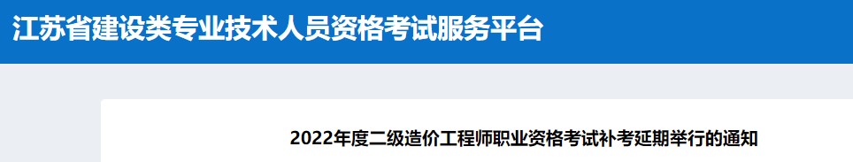 江蘇南京、蘇州、南通、泰州2022年二級造價師補考延期舉行的通知