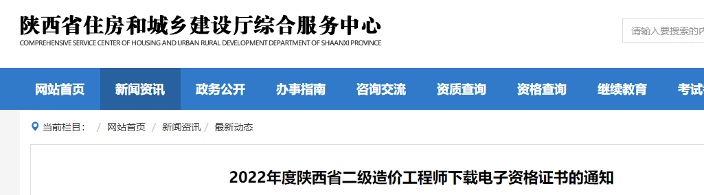 2022年度陜西省二級(jí)造價(jià)工程師下載電子資格證書的通知