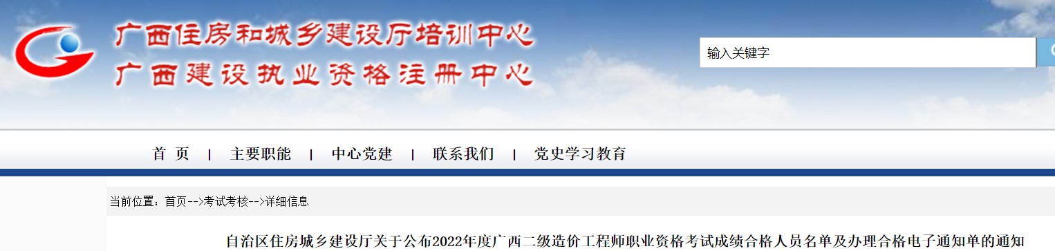 自治區(qū)住房城鄉(xiāng)建設(shè)廳關(guān)于公布2022年度廣西二級造價工程師職業(yè)資格考試成績合格人員名單及辦理合格電子通知單的通知