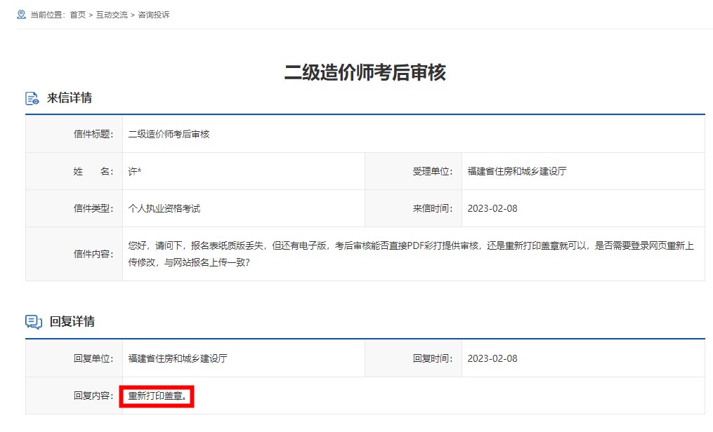 二級造價師考試報名表紙質(zhì)版丟了,還能參加考后審核嗎?近日,有福建省考生就二造考后資格審核的問題詢問了福建省住建廳,得到了官方回復(fù),一起來看一下具體內(nèi)容。