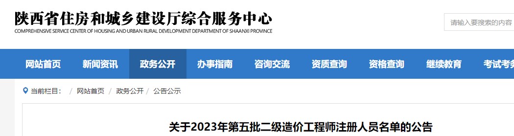 陜西省關(guān)于2023年第五批二級造價師注冊人員名單的公告