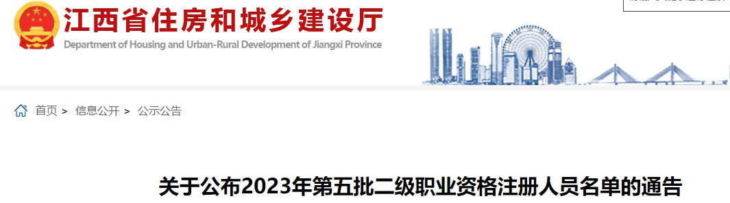 江西省關(guān)于公布2023年第五批二級造價師職業(yè)資格注冊人員名單的通告