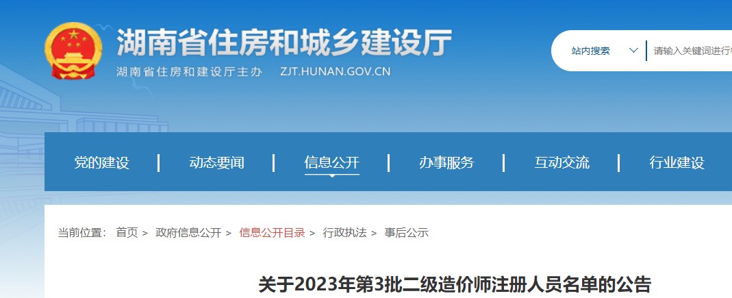 湖南省關(guān)于2023年第3批二級(jí)造價(jià)師注冊(cè)人員名單的公告