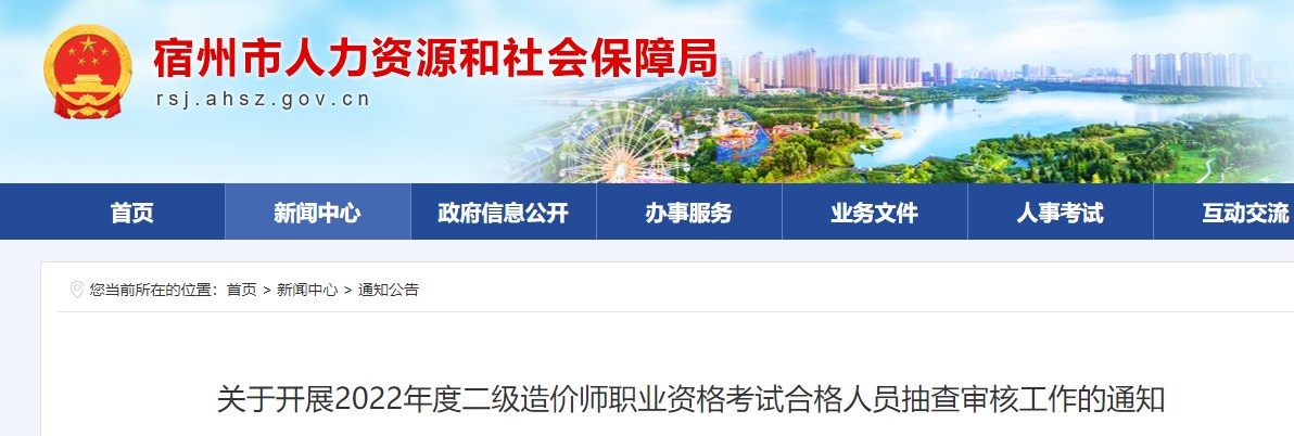 安徽宿州關(guān)于開(kāi)展2022年度二級(jí)造價(jià)師考試合格人員抽查審核工作的通知