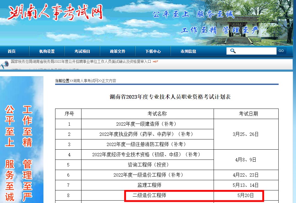 湖南省2023年二級(jí)造價(jià)師考試時(shí)間確定為5月20日
