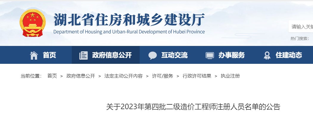湖北省關于2022年第四批二級造價師注冊人員名單的公告