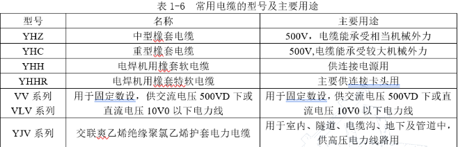 【解析】本題考查的是常用電氣材料。YHC主要用于500V,電纜能承受較大機(jī)械外力。見表1-6常用電纜的型號(hào)及主要用途。