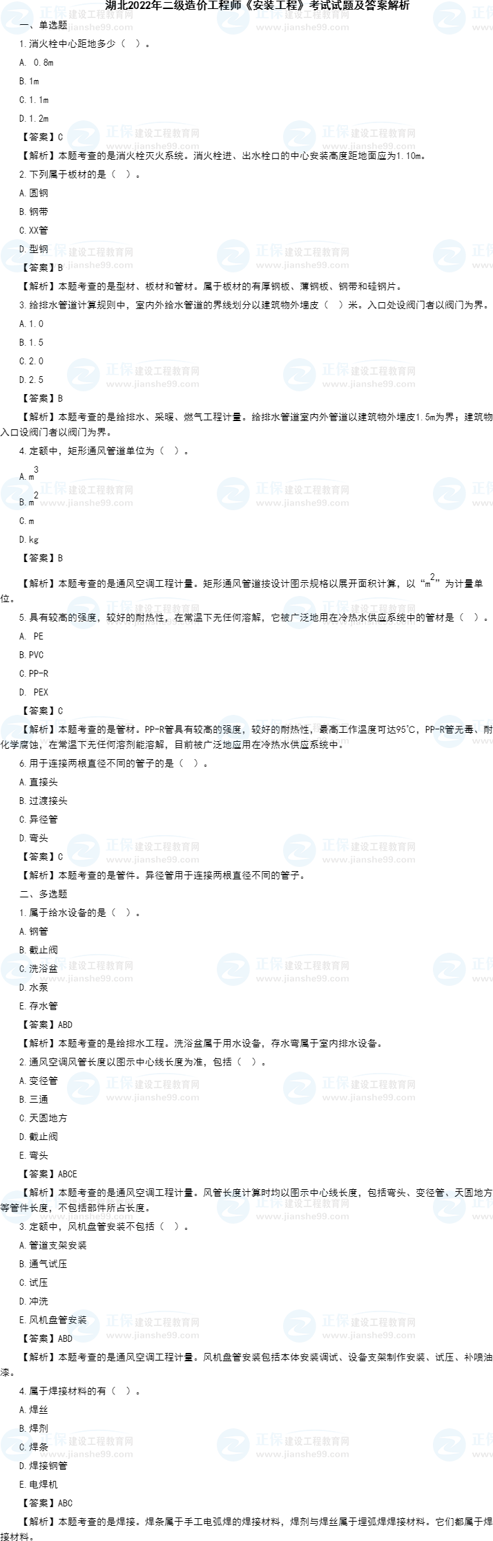 湖北2022年二級(jí)造價(jià)工程師《安裝工程》考試試題及答案解析(部分)