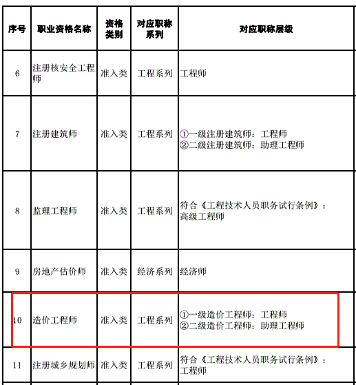 其中,對于取得一級注冊結(jié)構(gòu)工程師、一級建筑師、一級建造師或一級造價師資格的人員,可聘任工程師職務(wù);對于取得二級注冊結(jié)構(gòu)工程師、二級建筑師、二級建造師或二級造價師資格的人員,可聘任技術(shù)員或助理工程師職務(wù)。