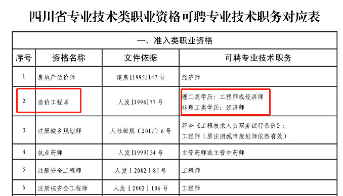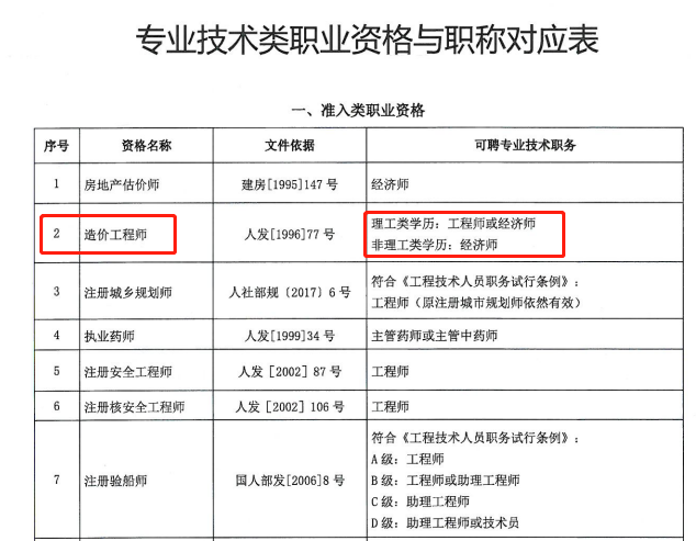 其中,取得一級造價工程師資格的人員,可聘任工程師職務(wù);取得二級造價工程師資格的人員,可聘任助理工程師職務(wù)。