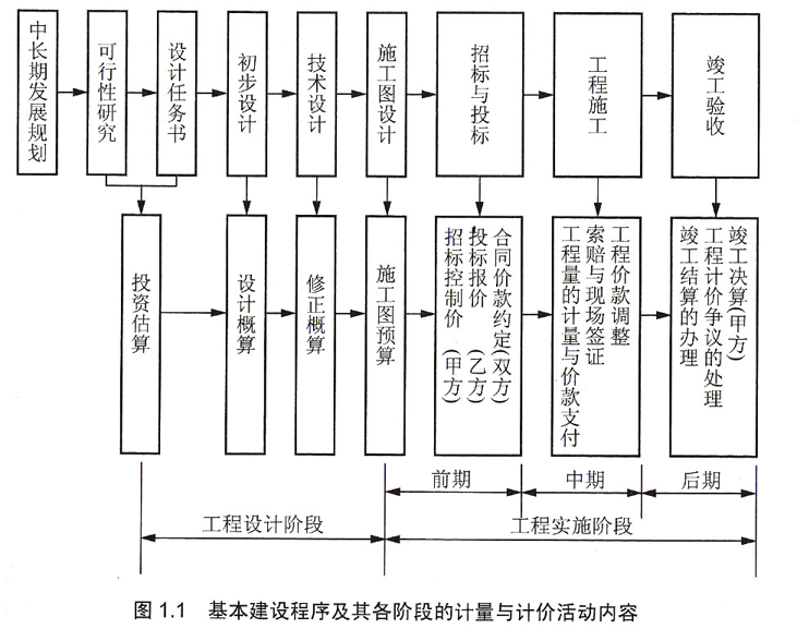 基本建設(shè)各階段的計(jì)量與計(jì)價(jià)活動(dòng)工程計(jì)量與計(jì)價(jià)活動(dòng)是一個(gè)動(dòng)態(tài)的過(guò)程,按照工程建設(shè)程序不同的階段,它有不同的內(nèi)容和作用。
