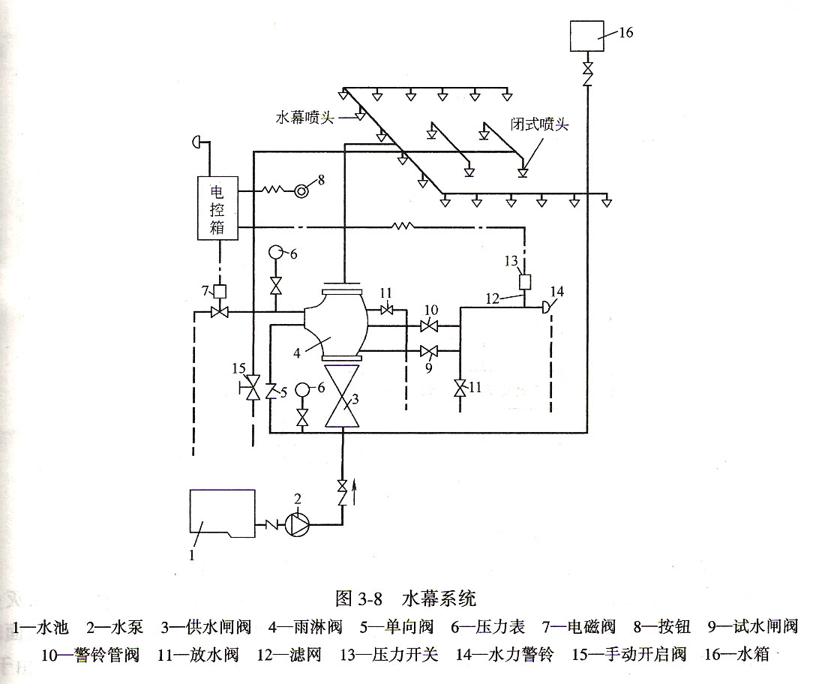 用于阻火隔火和冷卻防火分隔物。水幕系統(tǒng)不是滅火設(shè)施,而是防火設(shè)施。