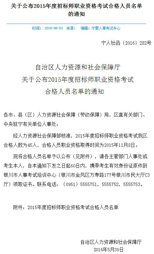 摘要:2015年招標師考試合格證寧夏自治區(qū)的已經(jīng)可以領(lǐng)取,自本通知下發(fā)之日起60日內(nèi),攜帶考生有效身份證原件到銀川市人事考試培訓(xùn)中心(銀川市金鳳區(qū)萬壽路177號銀川市民大廳C3廳)領(lǐng)取證書。聯(lián)系電話:(0951)5555751,5555752,5555753.