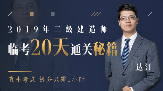 距離2019年二級建造師考試僅剩20天左右,隨著時間越來越近,發(fā)現(xiàn)很多重要的知識點未記住,心態(tài)也越來越焦躁。如何拯救你我的二級建造師考試!同學們,放輕松!建設(shè)工程教育網(wǎng)臨考20天直達秘籍直播,達江老師帶領(lǐng)考生們1小時直擊考點,1小時梳理重難點,1小時掌握做題技巧,你與直達只差這1小時!