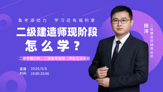 2020年二級(jí)建造師考試推遲,考試時(shí)間暫未確定。目前僅陜西、江西、江蘇完成了網(wǎng)上報(bào)名,其他省市二建報(bào)名時(shí)間暫未公布。二級(jí)建造師考試延期,備考戰(zhàn)線拉長(zhǎng),對(duì)于2020二建考生來(lái)說(shuō),既是機(jī)遇又是挑戰(zhàn)。備考時(shí)間太長(zhǎng),堅(jiān)持不下去怎么辦?現(xiàn)在開(kāi)始備考還來(lái)得及嗎?第一次報(bào)名怎么選專業(yè)?別慌,建設(shè)工程教育網(wǎng)特邀網(wǎng)校老師田洋老師為大家進(jìn)行直播講解。有什么問(wèn)題,直接問(wèn)田洋老師吧!
