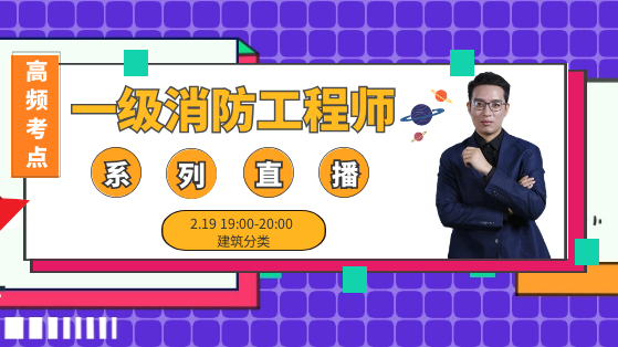 2020年一級(jí)消防工程師高頻考點(diǎn)系列免費(fèi)直播課,暫定有3期,2月12日開(kāi)始每周三晚上19點(diǎn),由靳嘯天老師為大家主講,全面深入剖析知識(shí)點(diǎn),夯實(shí)基礎(chǔ),每天1小時(shí),消防備考不再難。