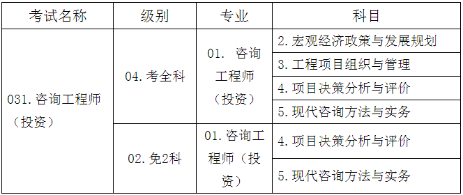 (二)凡符合以上規(guī)定并具備下列一項(xiàng)條件者,可免試《宏觀經(jīng)濟(jì)政策與發(fā)展規(guī)劃》《工程項(xiàng)目組織與管理》科目,只參加《項(xiàng)目決策分析與評價》和《現(xiàn)代咨詢方法與實(shí)務(wù)》2個科目的考試。
