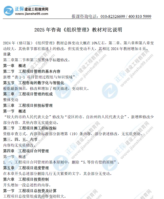 - · 2025年咨詢工程師《組織管理》教材變動(dòng)約10%