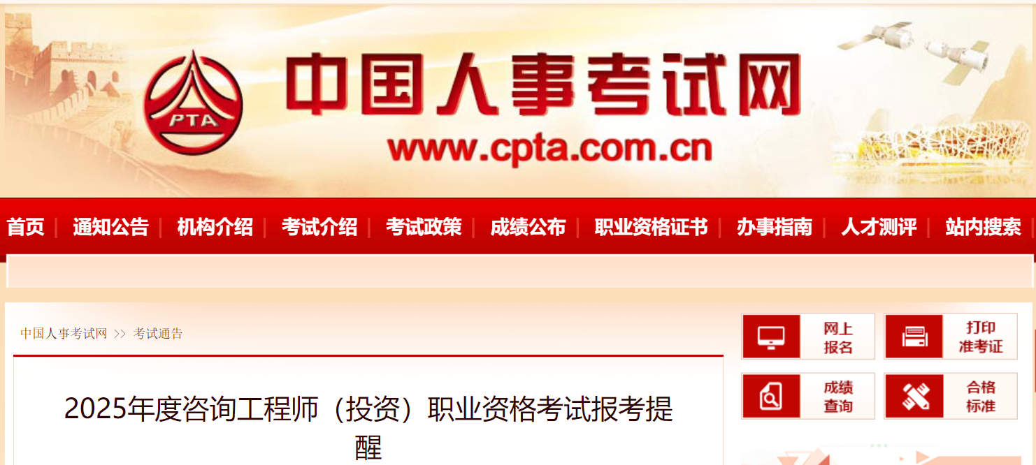 按照《關(guān)于2025年度專業(yè)技術(shù)人員職業(yè)資格考試工作計(jì)劃及有關(guān)事項(xiàng)的通知》有關(guān)安排,2025年度咨詢工程師(投資)職業(yè)資格考試將于4月12、13日舉行?,F(xiàn)就報(bào)考有關(guān)事項(xiàng)提醒如下:
