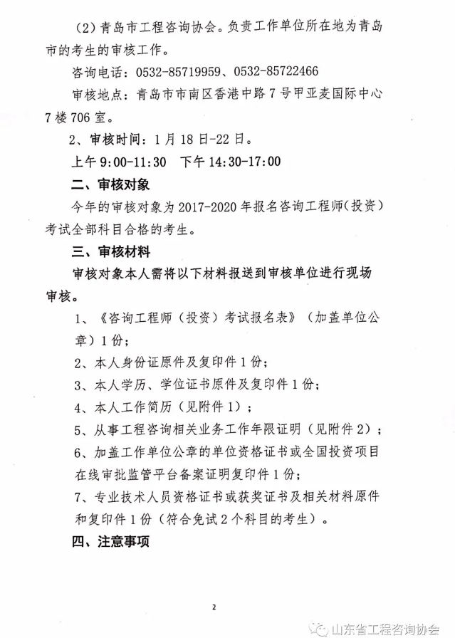 關于2020年度山東省咨詢工程師(投資)職業(yè)資格考試考后審核的通知