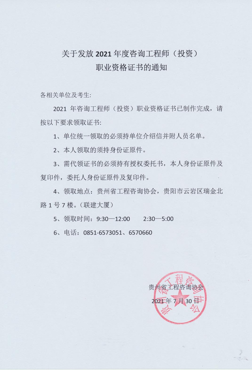2021年度貴州發(fā)放咨詢(xún)工程師(投資)職業(yè)資格證書(shū)的通知
