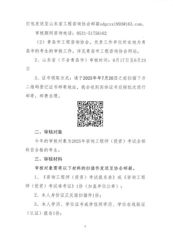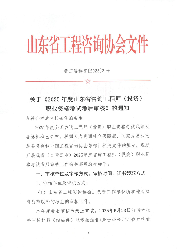 關(guān)于《2025年度山東省咨詢工程師(投資)職業(yè)資格考試考后審核》的通知
