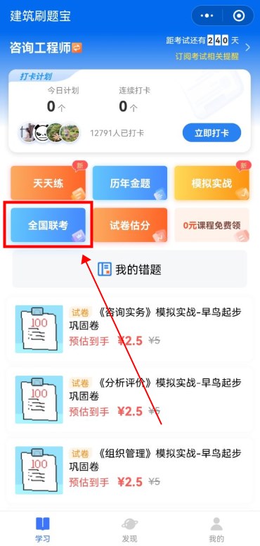 點(diǎn)擊“全國聯(lián)考”進(jìn)入考試入口。